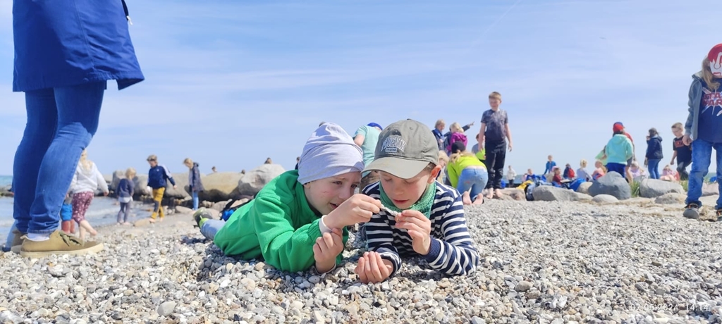 Gegen 14 Uhr verließen wir Fillipos Erlebnisgarten und bestiegen wieder die Busse, die uns zum nahegelegenen Ort Hohwacht fuhren. Dort wanderten wir zur Steilküste und konnten die Natur bei schönstem Frühlingswetter genießen. Die Kinder sammelten Steine und Muscheln und bestaunten die Steilküste, die die 4-Klässler gerade im Sachunterricht besprochen hatten.